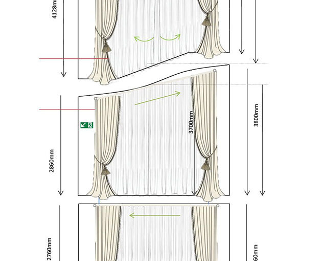 The curtain design, as depicted in our detailed diagrams, is meticulously planned to complement a staircase area, taking into account the necessity of space optimization and the architectural nuances of different floor heights. The curtains, with a substantial drop of 3700mm, cater to tall windows and enhance the vertical lines and sense of grandeur. The design merges practical function with decorative flair, ensuring the curtains are not only visually pleasing but also adaptable to the staircase’s unique requirements.