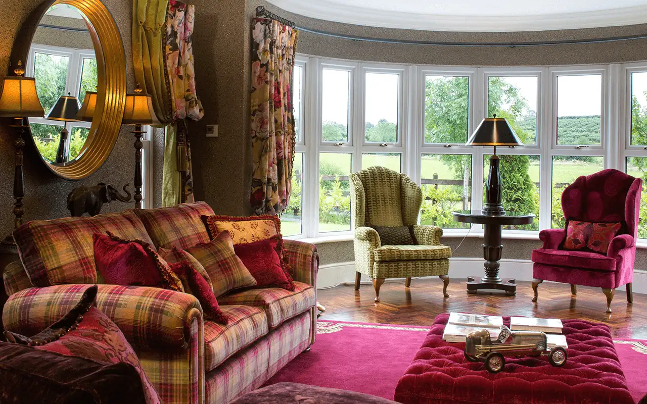 Part of this new-build project was a living space that was open to the kitchen and dining area. Our client wanted it to be classically styled and had already specified a dark herringbone wooden floor. We proposed a classic “Waldorf” sofa by Duresta covered in a tartan velvet by Mulberry as the centrepiece for the space, two ‘Selkirk’ wing chairs with Queen Anne legs covered in contrasting fabrics both by Zoffany gave the scheme a subtle quirky twist.